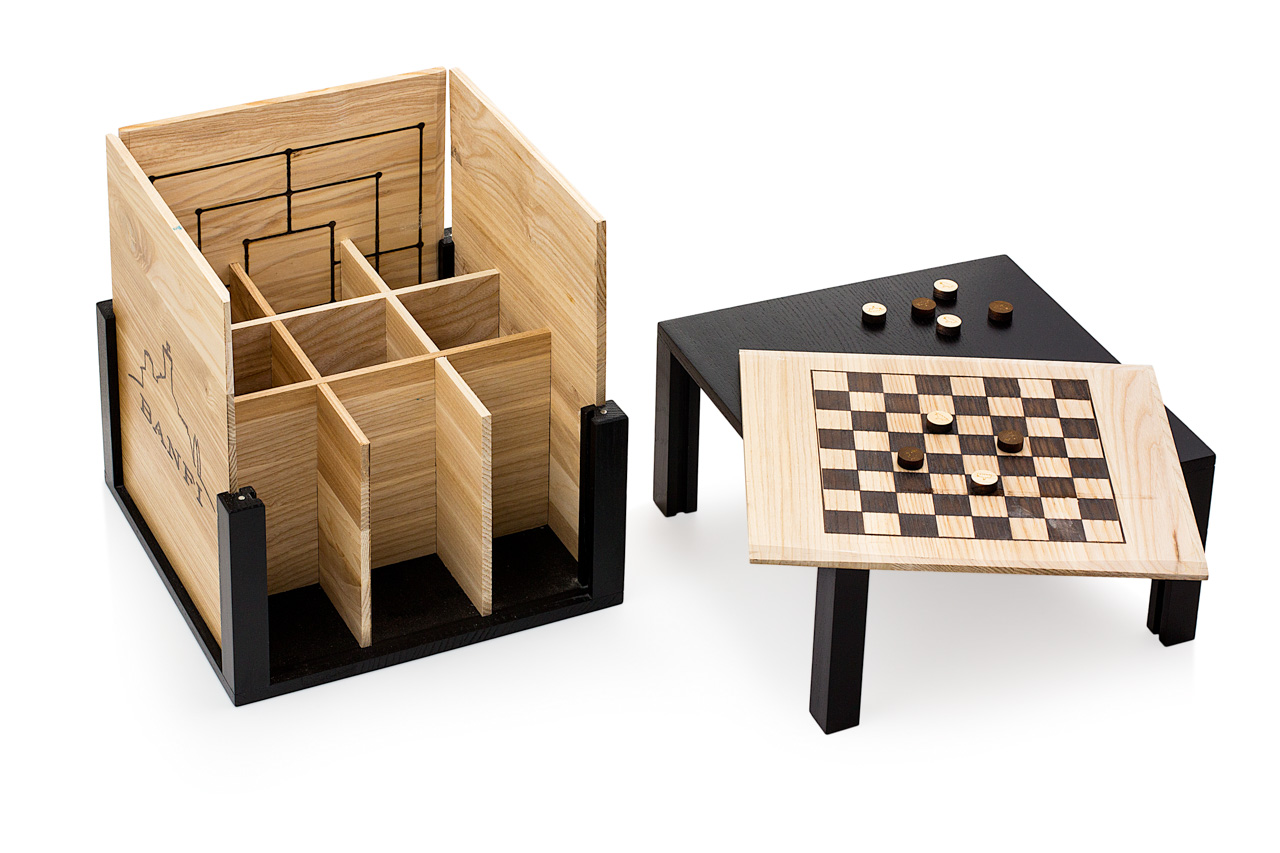 Scatola “Da cosa nasce cosa” La scatola realizzata per Castello Banfi, interamente in frassino, appartiene alla collezione “Da cosa nasce cosa”. Proprio come dal titolo, la scatola prodotta per contenere 9 bottiglie, si trasforma in un tavolo da gioco. Il vino, un momento di piacere e condivisone.